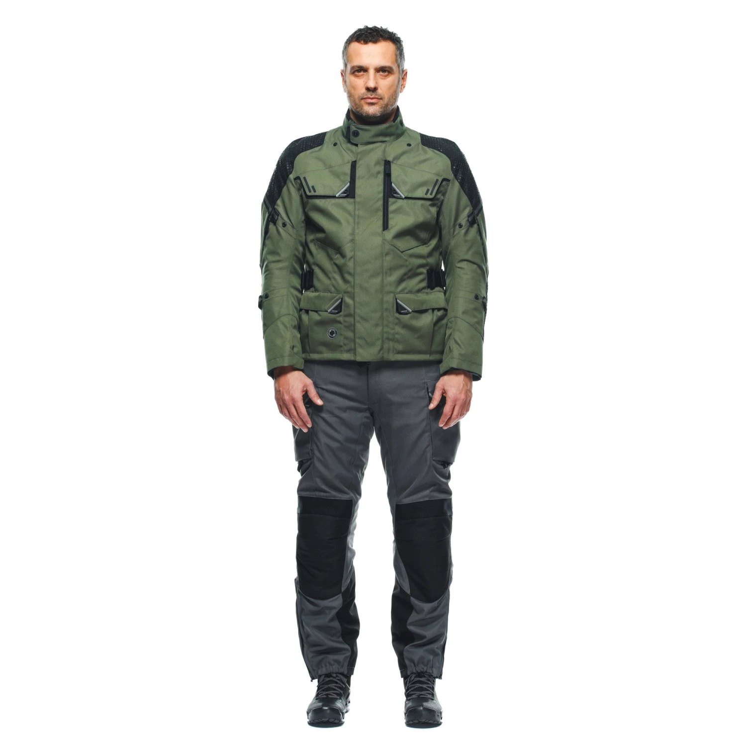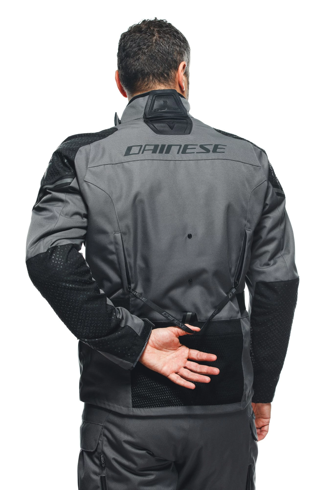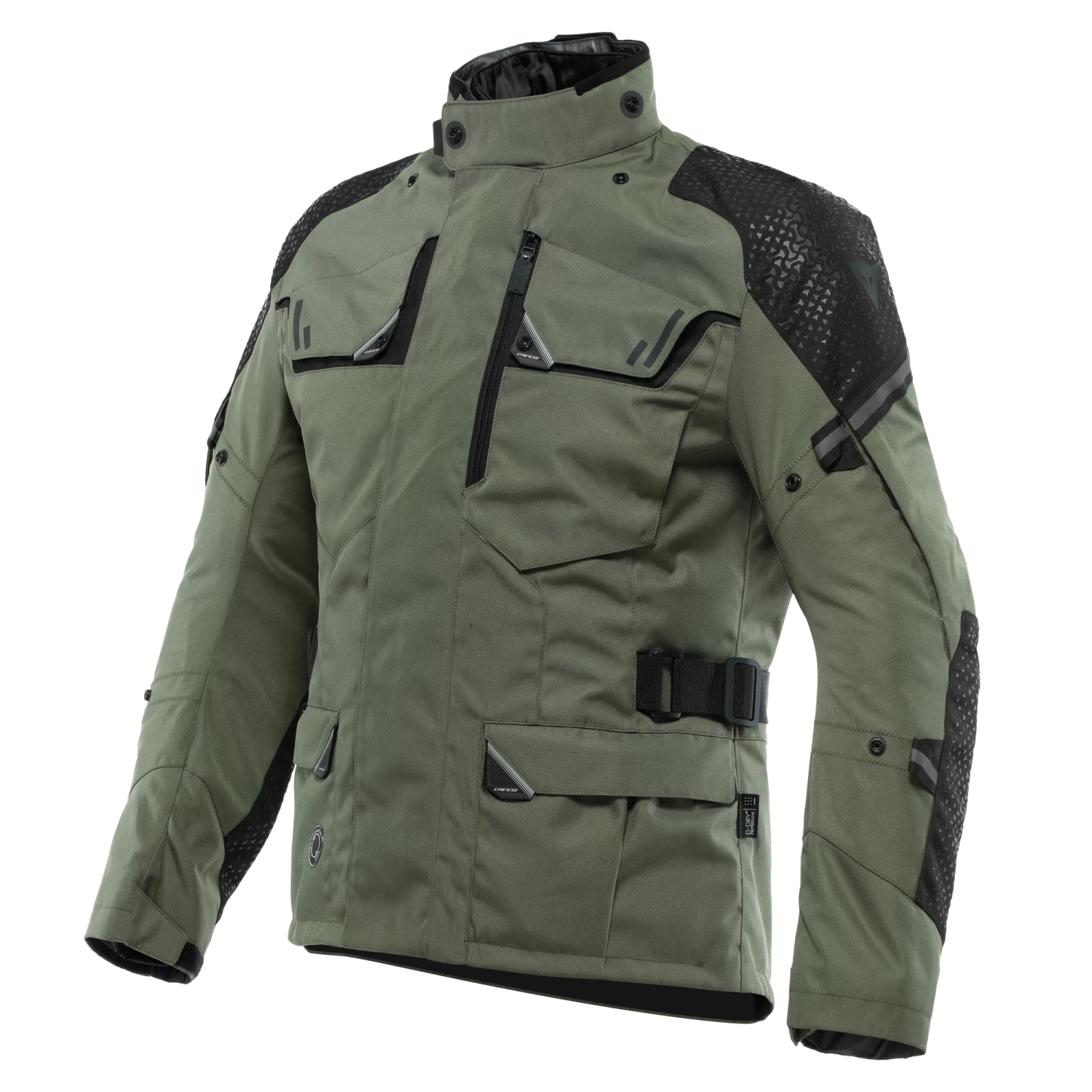 LADAKH 3L D-DRY® JACKET is the waterproof adventure touring jacket designed for long road and off-road trips. Extremely functional and versatile due to its three-layer construction, Ladakh 3L D-Dry® is great for use in all seasons. The removable waterproof lining and thermal layer, which can be worn separately, protect against colder temperatures, while the large ventilation openings on the arms and torso make it suitable even for hotter climates. The 4 large external pockets – 2 front and 2 cargo, one of which is mesh and easy to access even with one hand – offer lots of space for carrying everything you need on a trip, to hand at all times. Ladakh 3L D-Dry® features the integrated Dainese Magic Connection® technology, with a magnetic system that allows compatible Dainese gloves to be secured conveniently to the jacket, so they’re always in reach and don’t get lost when refueling or during short stops. Maximum safety is guaranteed by Pro-Armor Level 2 protectors on shoulders and elbows. It is designed to accommodate type G back protectors and chest protectors.