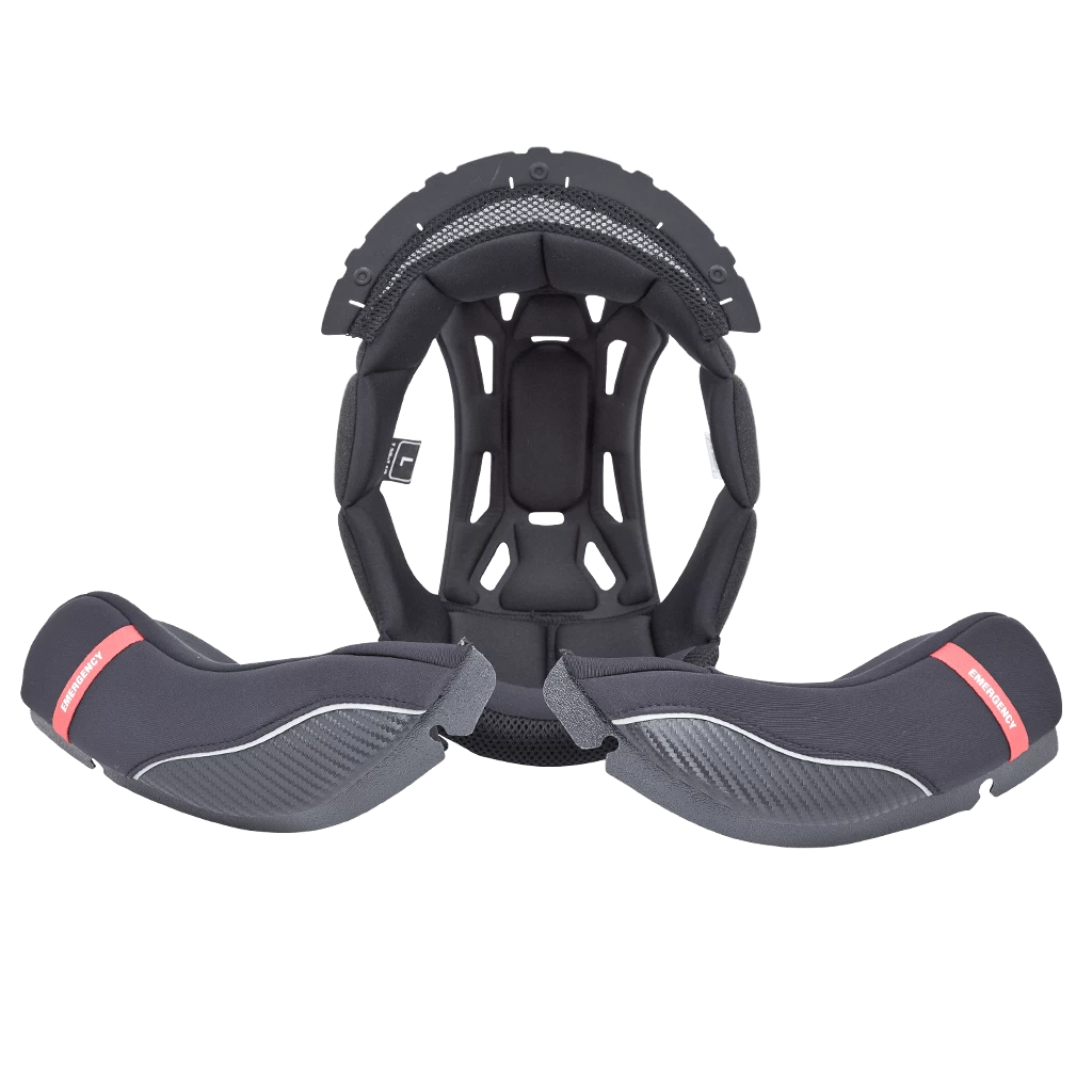 - Set includes liner (crown pad) and cheek pads