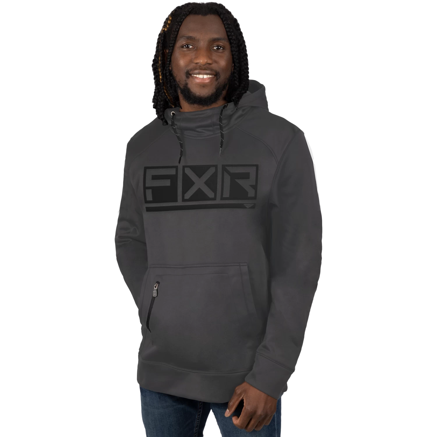 - Zippered front pouch hand pockets